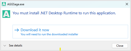 8) If you receive a pop-up saying "You must install .NET Desktop Runtime to run this application." - click the "Download it now" button.