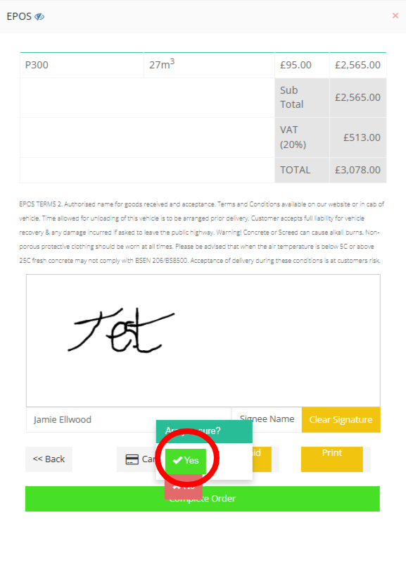 Step 36: Press the Complete Order button then select the "Yes" button to confirm.