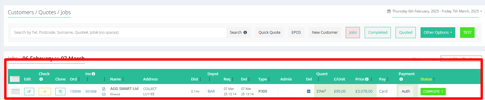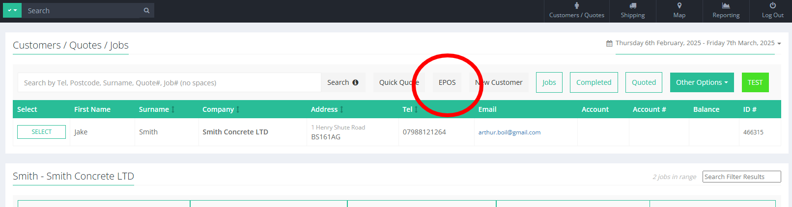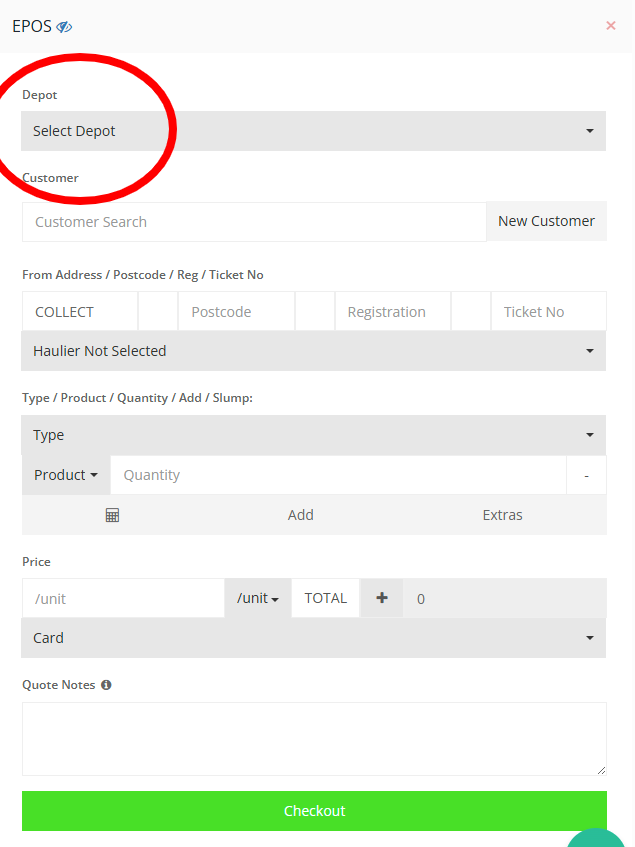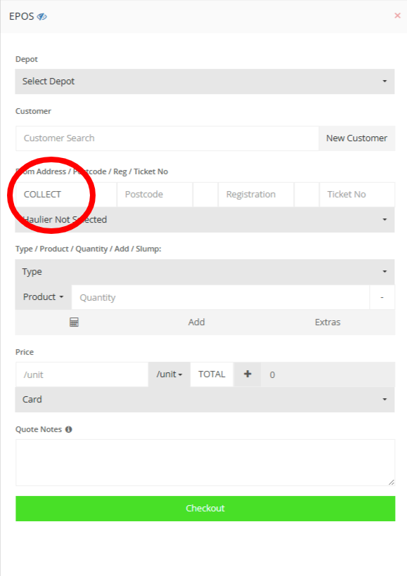 EPOS is a feature in Customers/Quotes (A pop-up button) that allows to create an order which is to be collected by the customer without delivery (Collect load).