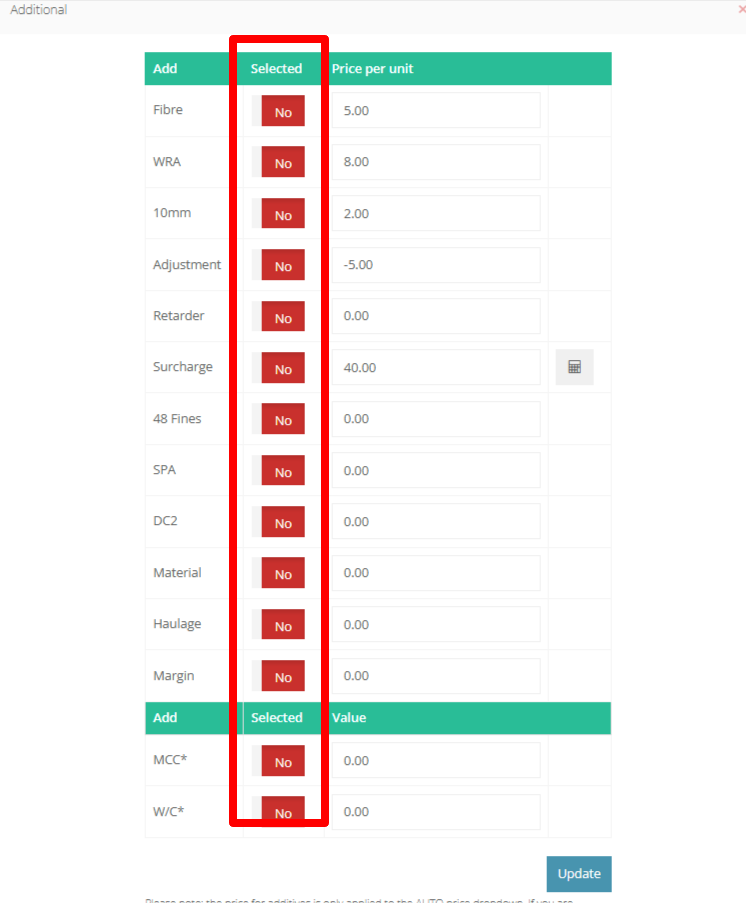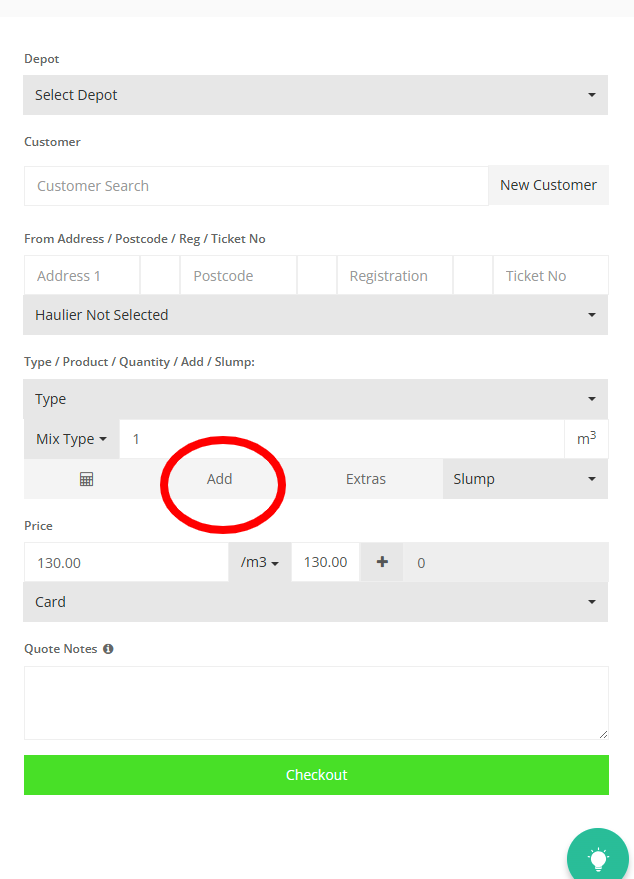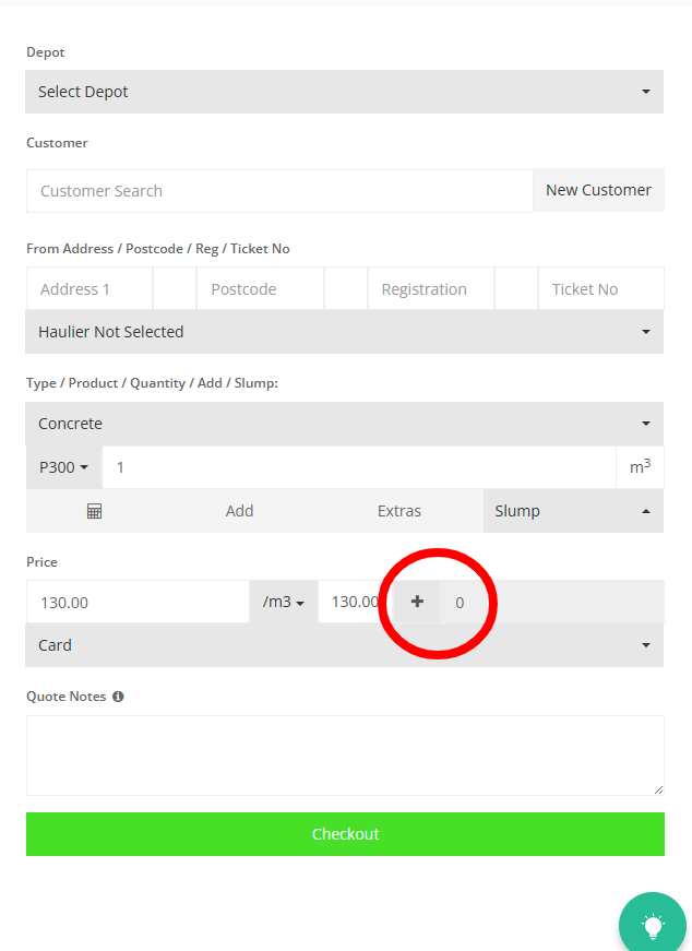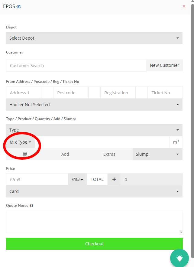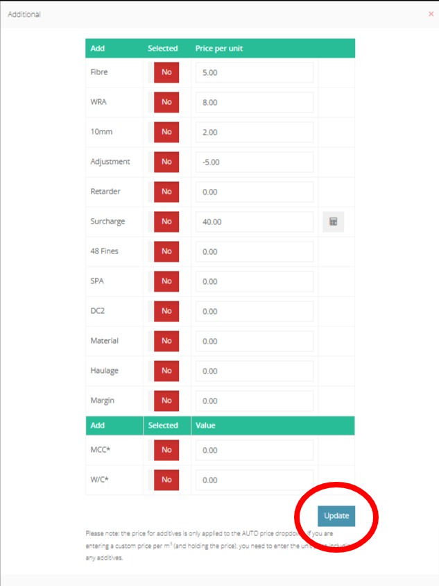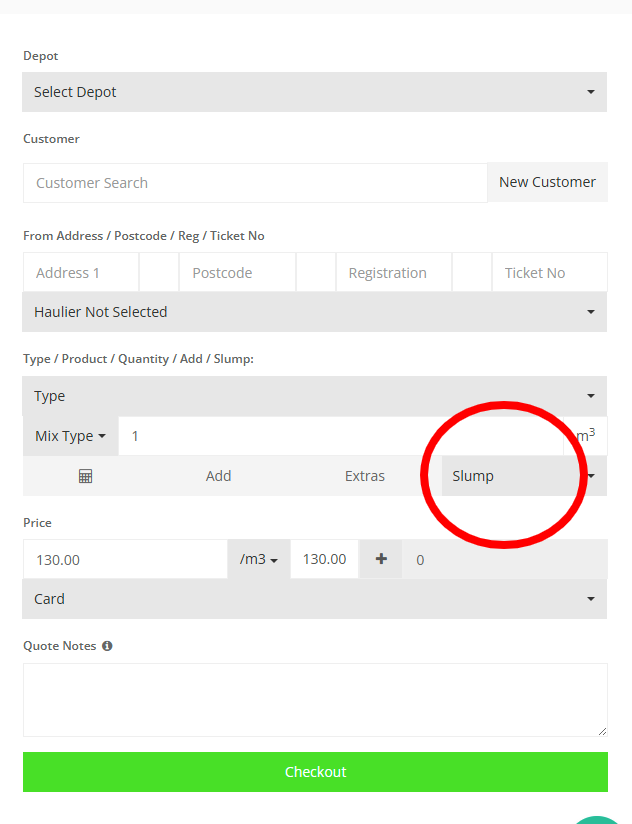 Step 25: Press on the "Slump" to view the drop down and select the desired Slump level.