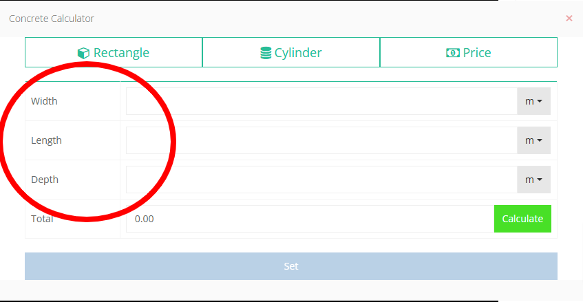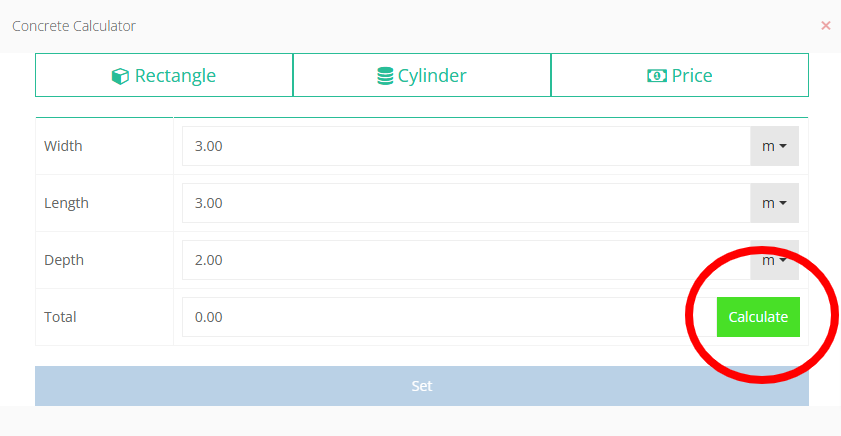 Step 16: After Inputting into the three fields (Width, Length, Depth) select the "Calculate" Button to work out the total volume of the order.