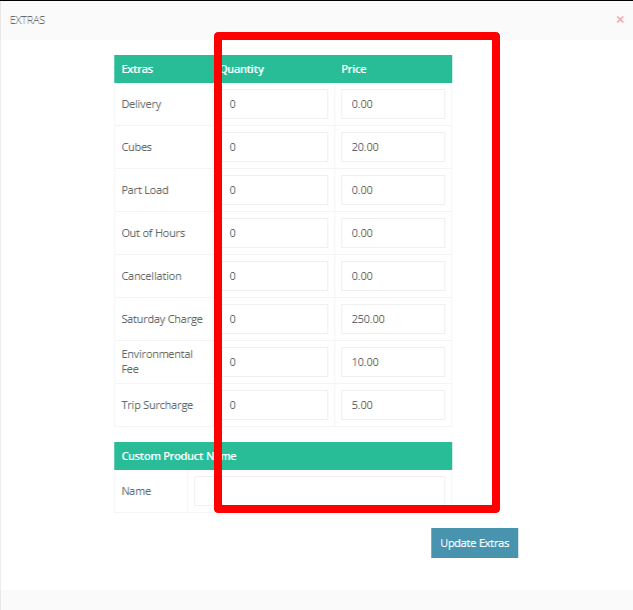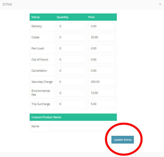 Step 27: If an "Extras" additional charge is applied it will be shown in this box with the amount.