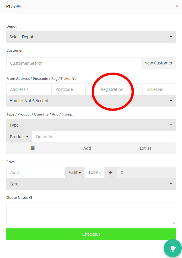 Step 9: Enter Customer Vehicle Registration which will pickup the order.